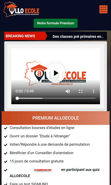 AlloECOLE, portail de référence des établissements scolaires et universitaires de Côte d’ivoire