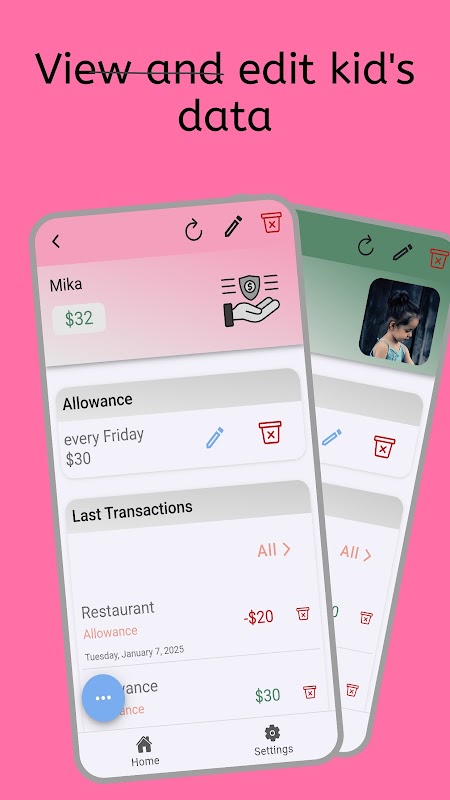 • Aplicación para niños: sus hijos también pueden instalar la aplicación y realizar un seguimiento de su saldo y transacciones. También pueden ajustar la aplicación como quieran, como tú.