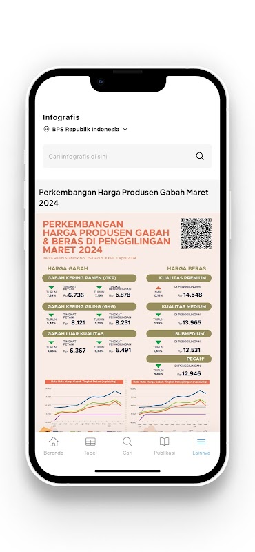 Todos los productos BPS se pueden descargar y almacenar en el dispositivo Android Sahabat Data. Las publicaciones y BRS se pueden descargar en formato pdf, mientras que las tablas dinámicas y las tablas estáticas se pueden descargar en formato Excel, luego las infografías se pueden descargar en formato jpg.