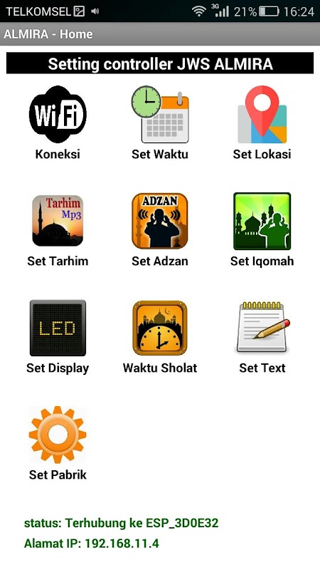 Horario de aplicación del controlador. Horario de oración de Almira V3.