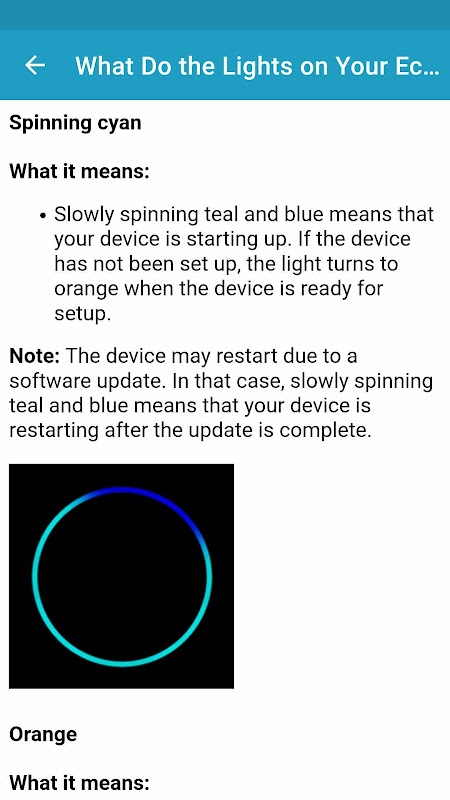 Los problemas de conexión Wi-Fi, la transmisión de música no funciona y la falta de llamadas durante la configuración de Echo dot se describen en la sección de solución de problemas de la aplicación.