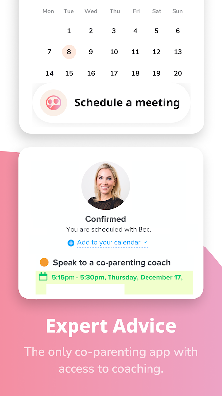 La aplicación de crianza compartida amicable® utiliza herramientas bellamente diseñadas para ayudarlo a administrar todos los aspectos de la crianza compartida en un lugar seguro, simplificando la crianza después del divorcio y la separación.