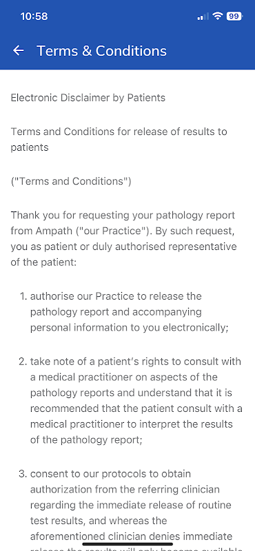 La aplicación Ampath muestra los resultados de su prueba de patología Ampath personal tan pronto como estén disponibles.