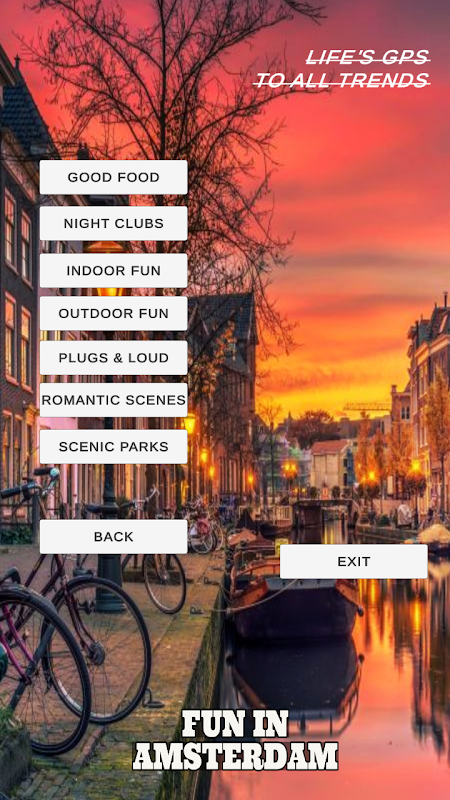 La lista de aplicaciones conecta a los usuarios con la mejor buena comida, clubes nocturnos, diversión en interiores, diversión al aire libre, parques panorámicos y también tiene una función de notificación para informarle al instante sobre ventas, diversión en parques temáticos y comida increíble en Ámsterdam y mucho más.