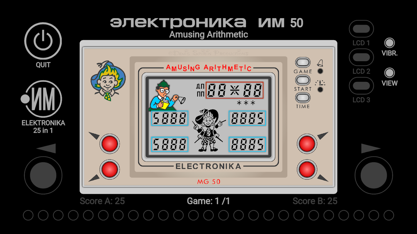 La consola de juegos única, incomparable en el mundo "Merry Arithmetic" fue desarrollada y producida en la URSS desde finales de los 80 y en Rusia hasta mediados de los 90. Un juego electrónico le permite mejorar el conocimiento en matemáticas de una manera lúdica, dominar las tareas de reconocimiento de patrones, análisis lógico de valores numéricos y el desarrollo de habilidades de conteo oral al realizar operaciones aritméticas.