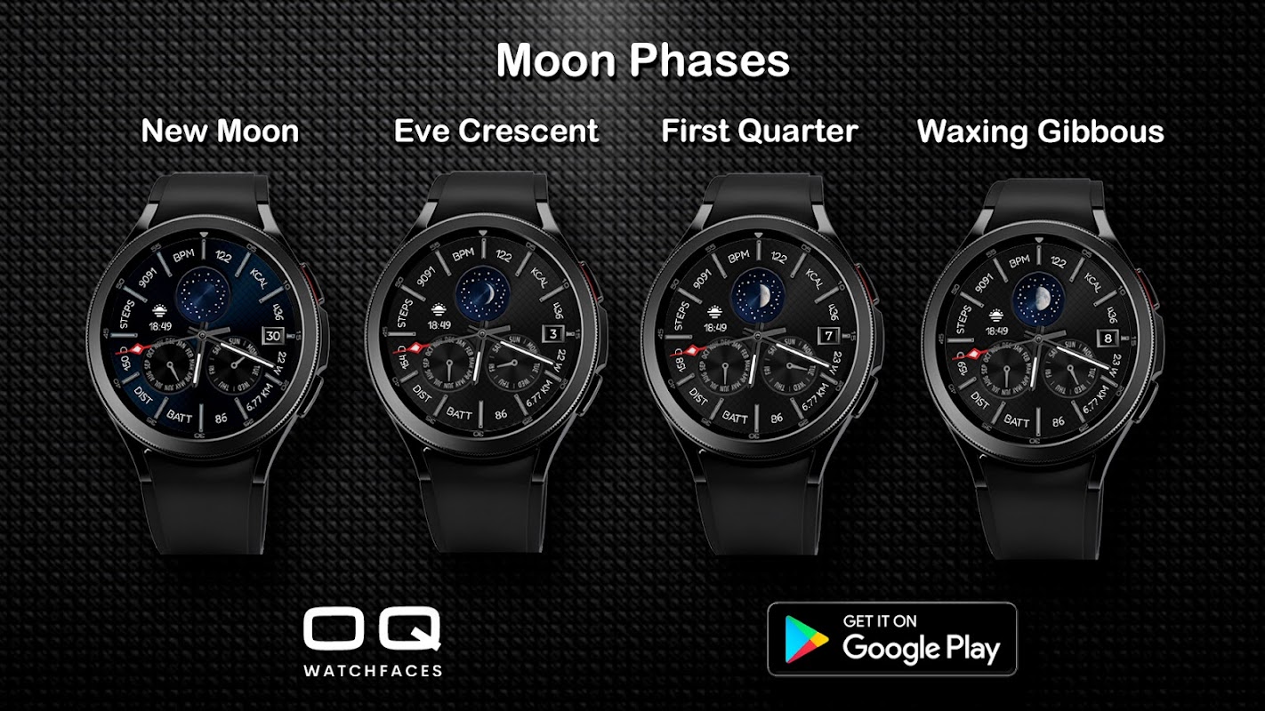 2. La esfera con la luna muestra las fases de la luna. Consulte las vistas previas de la pantalla.