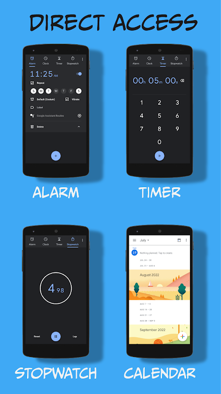 Colección de widgets de reloj analógico, diseño colorido moderno, alarma y calendario