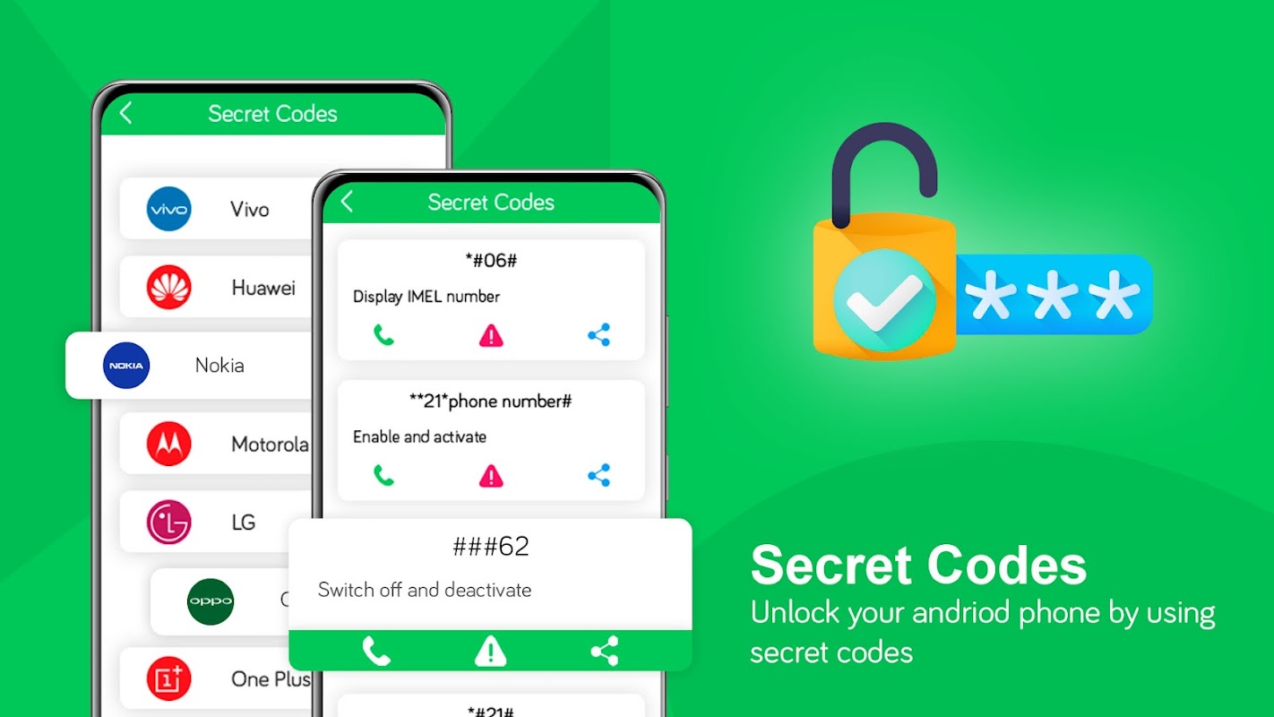 Códigos secretos móviles para Android para desbloquear el potencial oculto de tu smartphone. Todos los códigos secretos para aplicaciones móviles brindan códigos USSD y trucos para explorar todas las funciones ocultas e información útil para las principales marcas de teléfonos móviles. Libere un mundo de características, configuraciones y funcionalidades ocultas que generalmente están escondidas detrás de escena utilizando 📱 consejos y trucos de códigos secretos móviles. Si eres un entusiasta de la tecnología o un usuario curioso, esta aplicación móvil de trucos y consejos para Android es tu clave para desbloquear todo el poder de tu dispositivo Android.