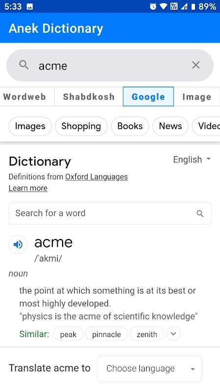 🟣 Shabdkosh: proporciona uno de los servicios de diccionario de idiomas de inglés a indio más populares del mundo
