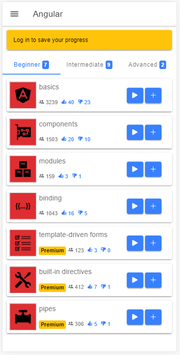 ⭐ Los cuestionarios están clasificados en niveles principiante, intermedio y avanzado para que puedas desarrollar tus habilidades angulares a tu propio ritmo.