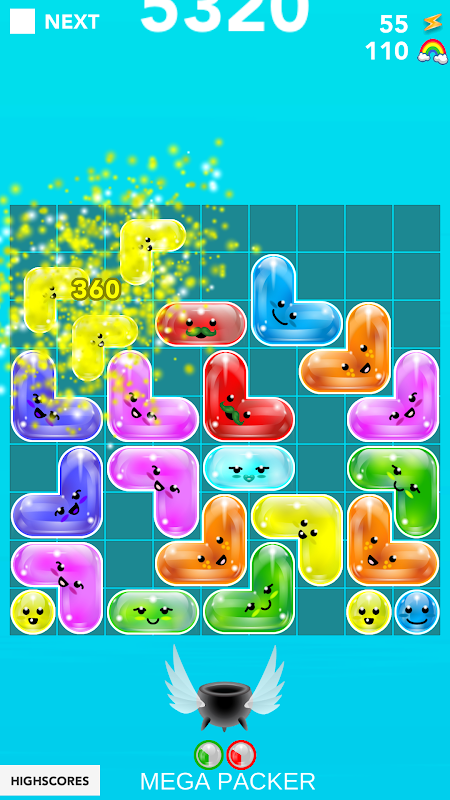 Try to connect three or more shapes of the same color, or just pack them together to make rows without gaps.