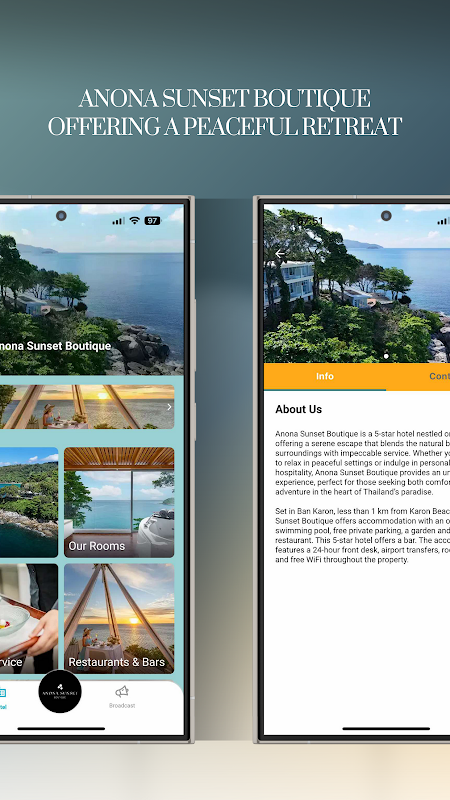 Fiel a su nombre, "Sunset", el hotel ofrece espectaculares vistas del atardecer cada noche, lo que permite a los huéspedes disfrutar de los momentos más bellos y serenos mientras el sol se esconde en el horizonte. Esta impresionante vista proporciona un telón de fondo ideal para la relajación, lo que la convierte en el lugar perfecto para el rejuvenecimiento, la reflexión o incluso momentos románticos. Ya sea que busque aventura o consuelo tranquilo, Anona Sunset Boutique promete una experiencia inolvidable en el corazón del paraíso de Tailandia.