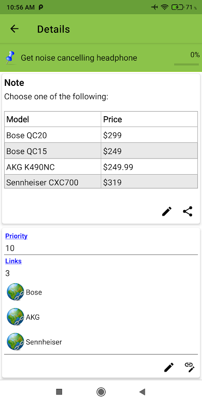 Organizar listas de notas en orden jerárquico. Asignar icono, prioridad, color, etc