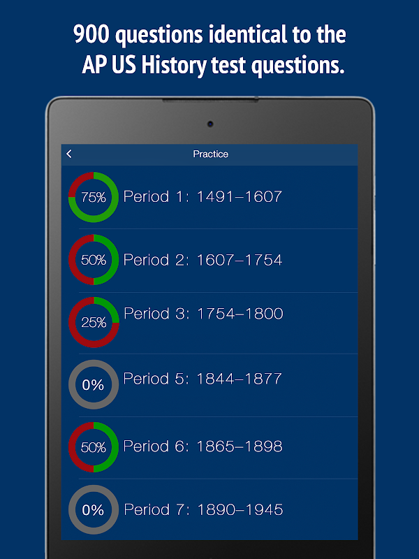AP US History practice exam simulator is a free ap US history exam prep app for Advanced Placement world history examination. It is a complete AP US History study guide to prepare you for actual ap US history exam by taking AP US History practice exam , studying ap US history flashcards and mock test. This application is designed to take AP US History practice exam on the go without internet on your mobile device. This AP US History practice exam prep app record you performance and highlight the weaker area to let you focus on them while studying for ap US history exam. All questions are formulated by experts closer to the actual ap US history exam.