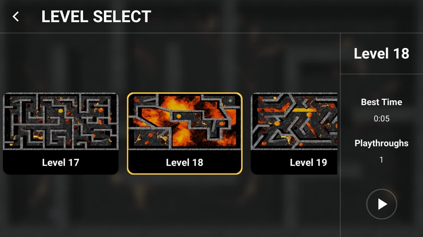 Consta de un laberinto y una pelota que se controla mediante la inclinación del teléfono. Para aumentar la dificultad, puedes aumentar la velocidad de la pelota.