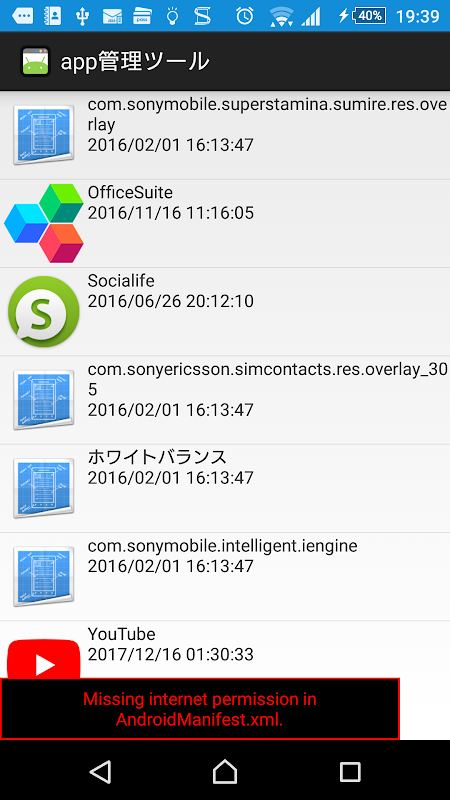 リストからアプリを選択することで、アプリ情報を表示したり実行することができます。