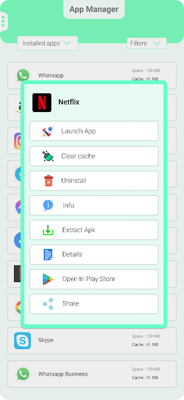 Nuestra aplicación permite a los usuarios inspeccionar todas las aplicaciones (tanto del sistema como instaladas) en sus teléfonos. Esto incluye: