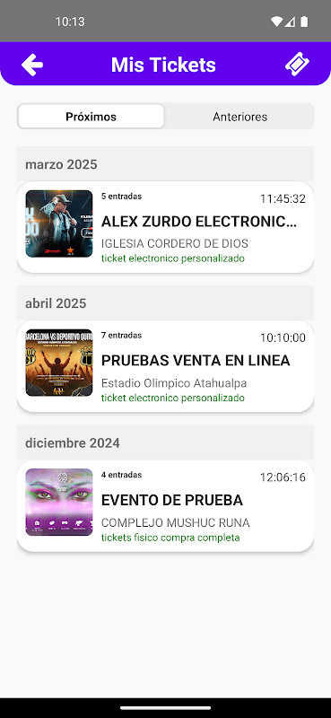 Compra y gestiona tus tickets de eventos.Acceso rápido a conciertos
