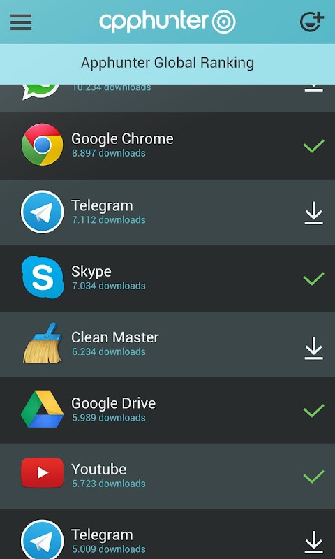 RANKING APPHUNTER: Una clasificación global de las aplicaciones más populares dentro de la comunidad Apphunter.