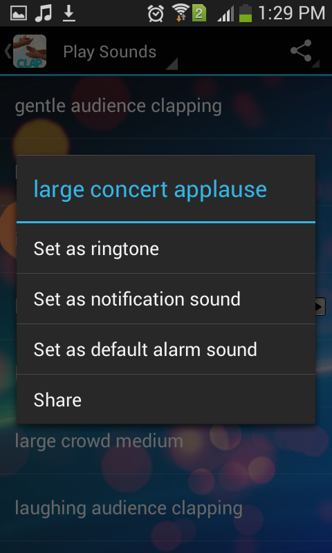 - Seleccionar Tonos Aplausos (aplausos, aplausos intensivos, riendo con aplausos, aplausos, multitud fuerte aplauso)