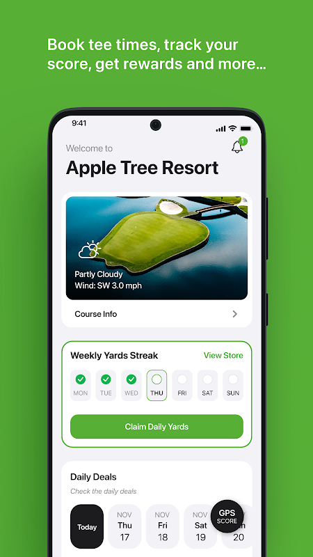 La aplicación Apple Tree Resort incluye reservas de horarios de salida personalizados con navegación sencilla y reserva de horarios de salida.