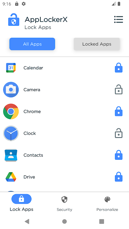 Proteja sus aplicaciones con AppLockerX, el bloqueador de aplicaciones más completo del mercado. Ya sea que prefiera patrones, PIN o huellas digitales, AppLockerX lo tiene cubierto. Disfrute de un elegante tema oscuro y elija entre patrones de 3x3, 4x4 o 5x5 para obtener la máxima flexibilidad.