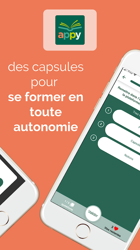Aplicación de aprendizaje móvil para capacitación y facilitación. Apoyándose en cuestionarios, en contenidos presentados de forma breve y divertida, Appy hace posible descubrir, aprender y consolidar conocimientos empresariales y transversales. Las actividades específicas, en función del tiempo disponible, y los retos permiten potenciar el aprendizaje y anclar los conceptos necesarios para la actividad diaria.