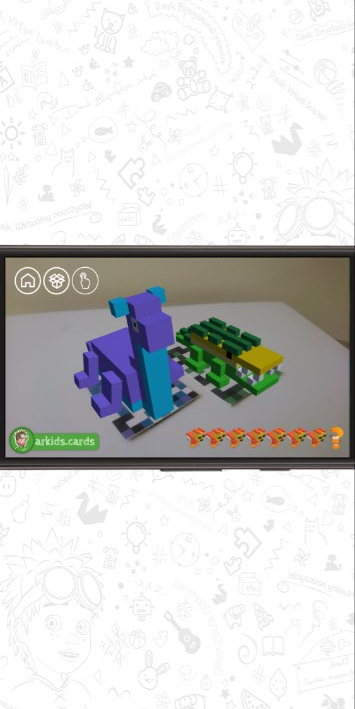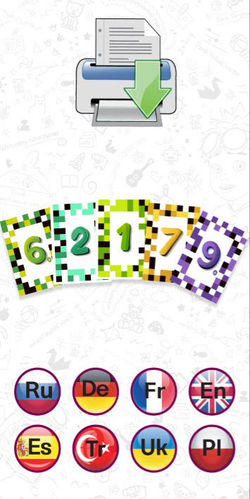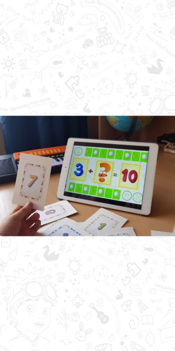 Скачать и распечатать на принтере карточки. Ребенок решая задания программы, подносит карточки к камере планшета.