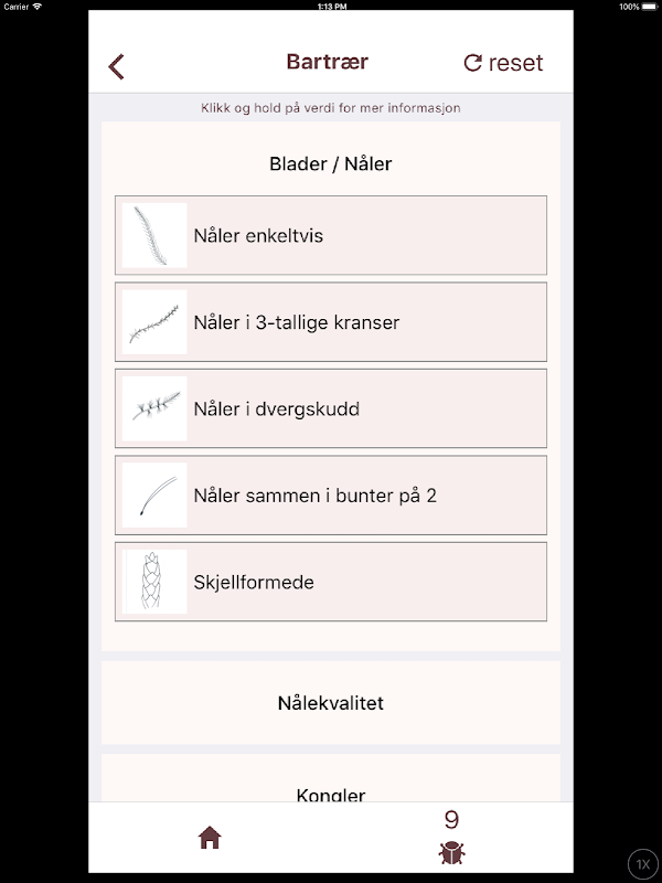 Appen inneholder en identifikasjonsnøkkel. Med identifikasjonesnøkkelen i appen kan du finne fram til trær som naturlig hører hjemme i Norge pluss noen av de vanligste innførte artene. Denne nøkkelen er hovedsakelig beregnet for bruk i vekstsesongen, hvor man har tilgang til blader, blomster og frukt. Identifikasjonsnøkkelen mangler fortsatt litt bilder, men dette vil kommer når bladene har sprunge ut.