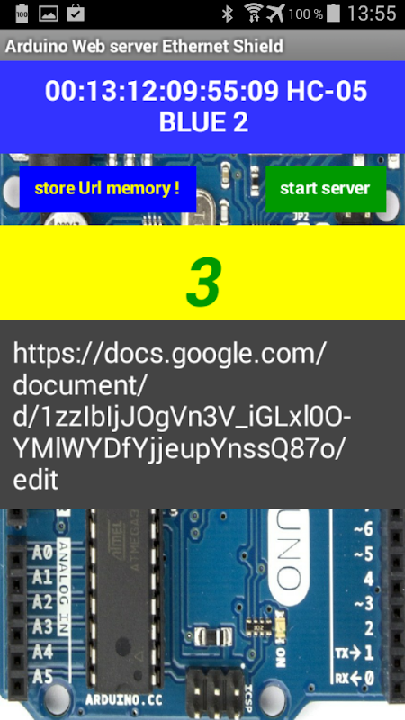 En el teléfono Android en el programa "ArduinoWebServerEthernetShield".