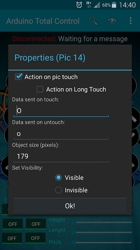 Thanks to your feedback and support, Arduino Total Control now can be fully customized. You can manage the layout as you like the most! Just enable "Edit properties" form the menu to hide/show buttons, text or images, then, keep your finger (long click) on the picture in order to change the displayed image, and choose one from your gallery or take a shot.