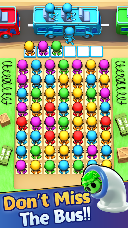 A medida que avanzas en cada nivel de Army Bus Jam 3D, llegan pasajeros VIP, personas especiales que necesitan atención adicional en este viaje a través de desafíos de combinación de colores. A medida que avanzan los niveles, la combinación de colores se vuelve más desafiante, poniendo a prueba tus habilidades para manejar pasajeros atascados y mantener el orden en medio del creciente caos de los rompecabezas de clasificación de colores de bloques del ejército y el juego de combinación triple en 3D.