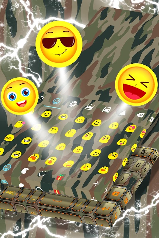 Este hermoso tema de teclado utiliza Nuevo Teclado 2018, Teclado americano 2018 o Nuevo teclado Emoji 2018 . Cuando abras Tema del teclado del ejército, recibirás instrucciones sobre cómo descargar Nuevo Teclado 2018. ¡Comienza a disfrutar de este asombroso teclado de tema gratis!