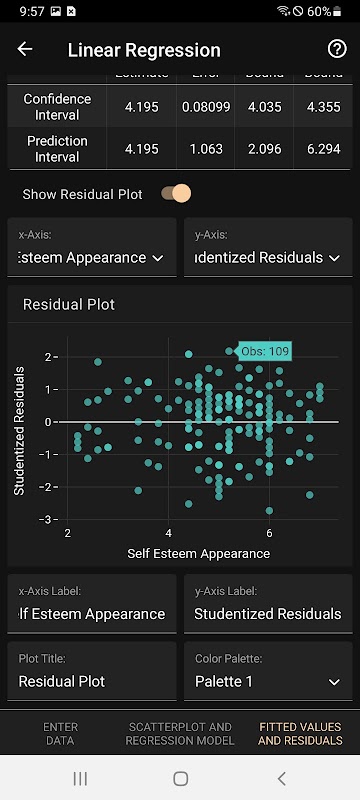 La aplicación Art of Stat: Linear Regression crea diagramas de dispersión, ajusta modelos de regresión lineal, logística o exponencial simples (y múltiples) y muestra inferencias para los parámetros del modelo (errores estándar, intervalos de confianza, valores P).