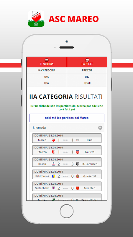 La primera aplicación de fútbol con Live Score y notificaciones push en Tirol del sur