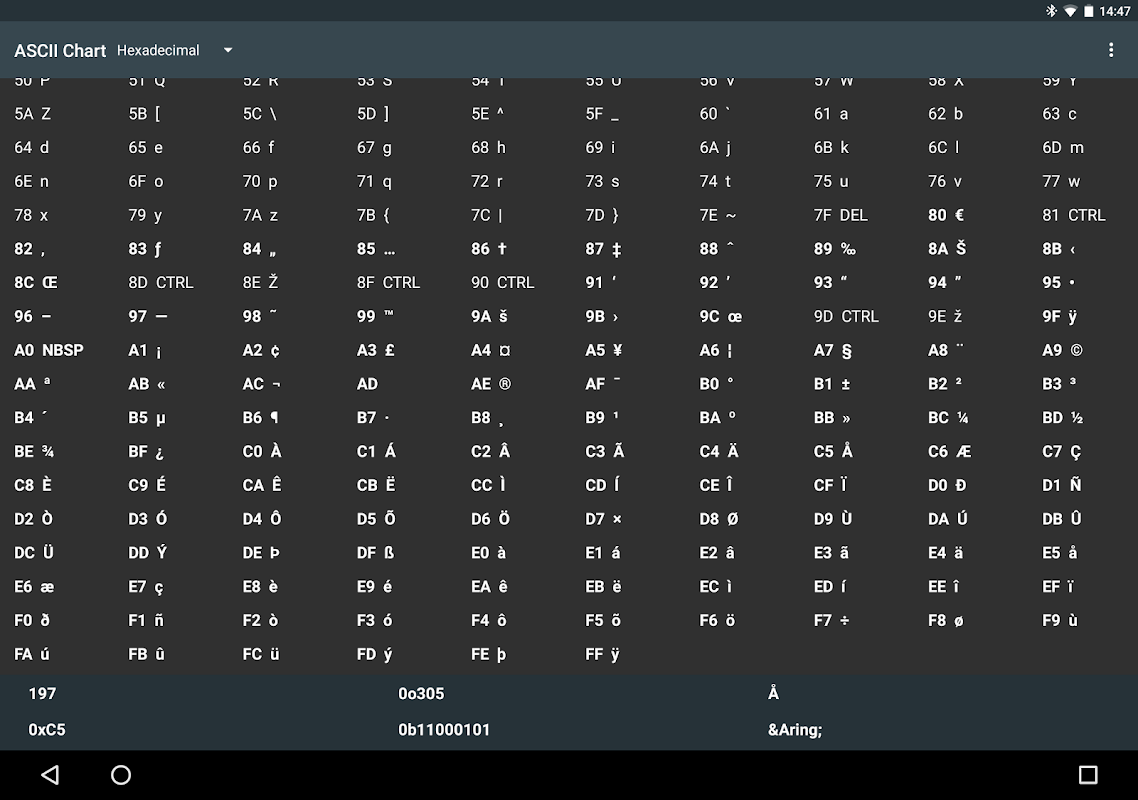 Información de ASCII Chart APK