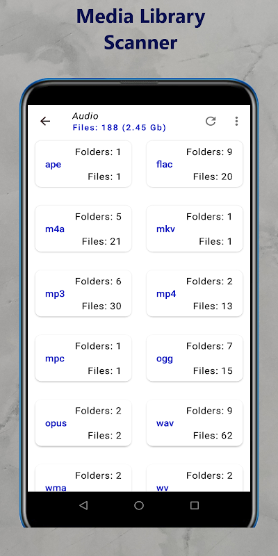 • Admite archivos de formatos de audio de Android utilizando decodificadores de audio instalados en el sistema