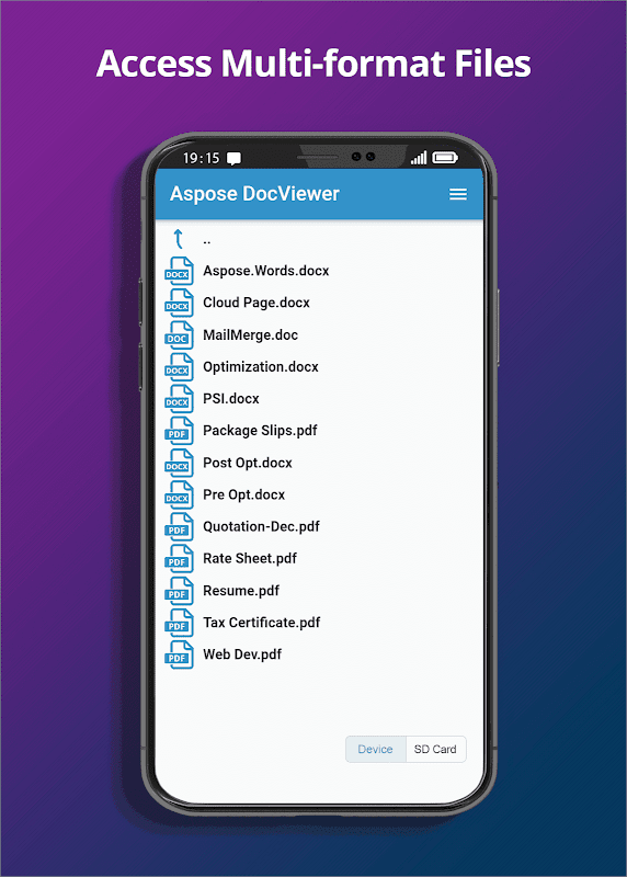 Aspose.Words is a lightweight document reader with a built-in file explorer. It allows you to browse and open documents in the most widely used Microsoft Word (doc, docx, rtf), OpenOffice (odt), PDF, Web (html, mhtml, md), and E-book (mobi) formats. An internet connection is required to get the application working.