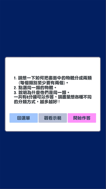 Assessing Creativity es una aplicación para la evaluación de la creatividad, que incluye cuatro contenidos de juego: juego de un golpe, juego de asociación de atributos, juego de asociación de bocetos y juego de expansión de dibujo. Los usuarios pueden responder en la imagen o texto durante el proceso del juego, también puede analizar más a fondo. el rendimiento de la creatividad refinada o el pensamiento innovador, y todos los datos de respuesta también están protegidos por la privacidad del usuario. Además, la plataforma filtra automáticamente las respuestas indecentes, violentas y sexualmente sugerentes.