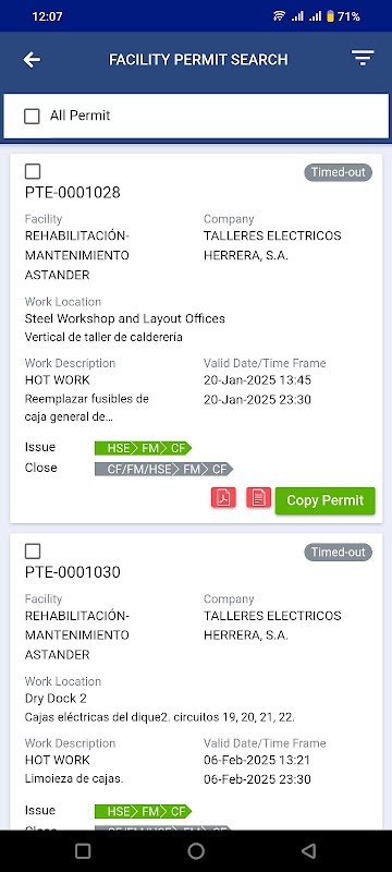 ePTW rastrea el estado de los permisos en tiempo real y garantiza la finalización y confirmación sin problemas de las tareas de Permiso/Certificado de aislamiento/Certificado de espacios confinados.