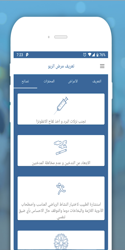 Esta aplicación proporciona información y consejos para pacientes asmáticos con los siguientes temas: