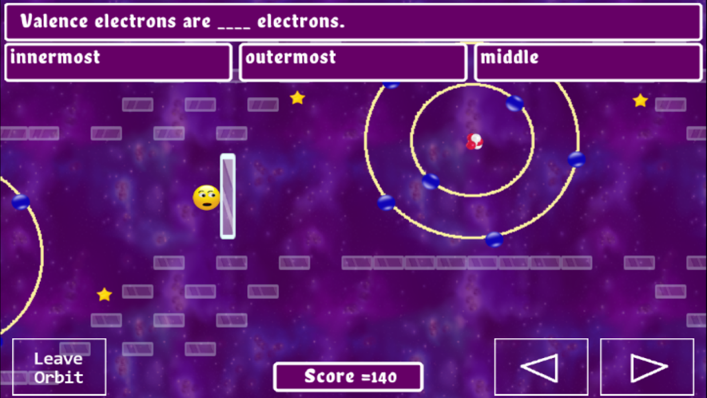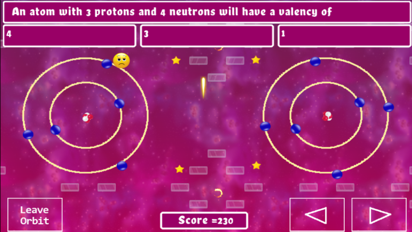 Este juego de átomos es un juego de plataformas de acción donde tendrás que superar múltiples niveles recorriendo órbitas atómicas. Si chocas con un electrón, tendrás que responder un cuestionario para continuar. Las preguntas se centran en la estructura atómica, centrándose en: