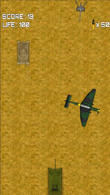 2.If a screen is touched down in the direction to attack, a turret will rorate, and the tank can attack