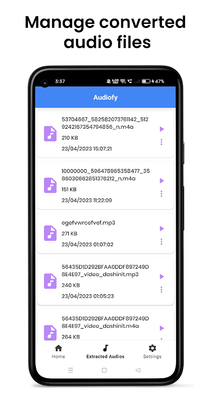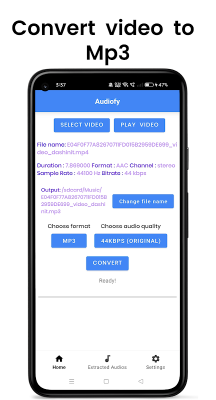 Esta aplicación le permite convertir archivos de video de diferentes formatos, incluidos MP4, MKV, etc., a archivos de audio de formato de audio MP3 y AAC.