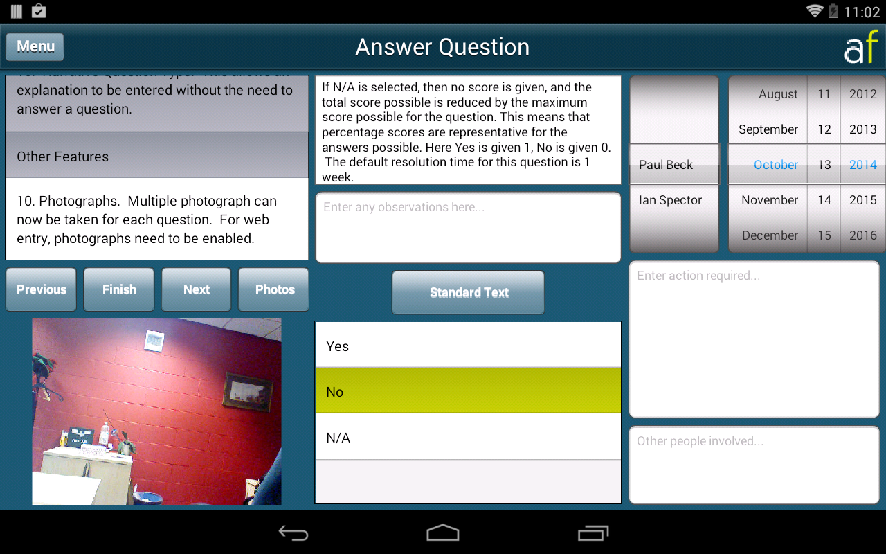 - Las respuestas a su auditoría se pueden recopilar mediante teléfonos inteligentes y tabletas, o a través de internet (con un navegador web).