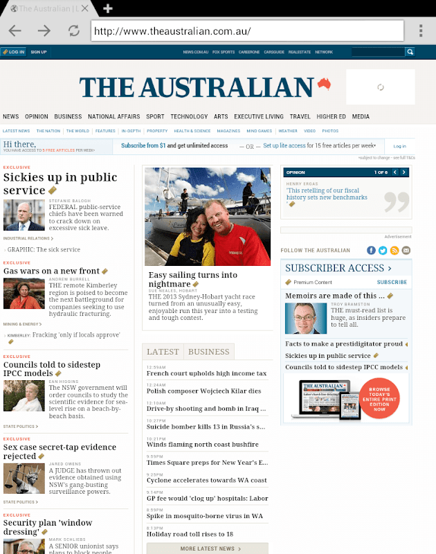 Usted puede encontrar noticias de; News.au, Sydney Morning Herald, ABC y muchos más sitios de noticias en línea.