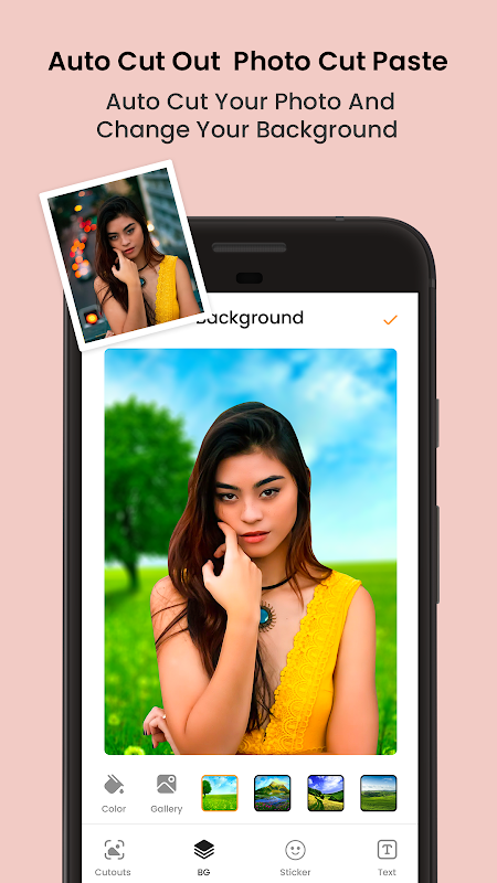 Auto Photo Cut Paste proporciona una manera rápida y fácil de crear increíbles imágenes personalizadas. Simplemente toque el área de la imagen que desea borrar y el editor de fotos recortado detectará automáticamente el área completa a través de la IA de detección de color y borrará esa área para que pueda pegar esa imagen en cualquier otra imagen o en nuestros 1000+ existentes Fondos HD.