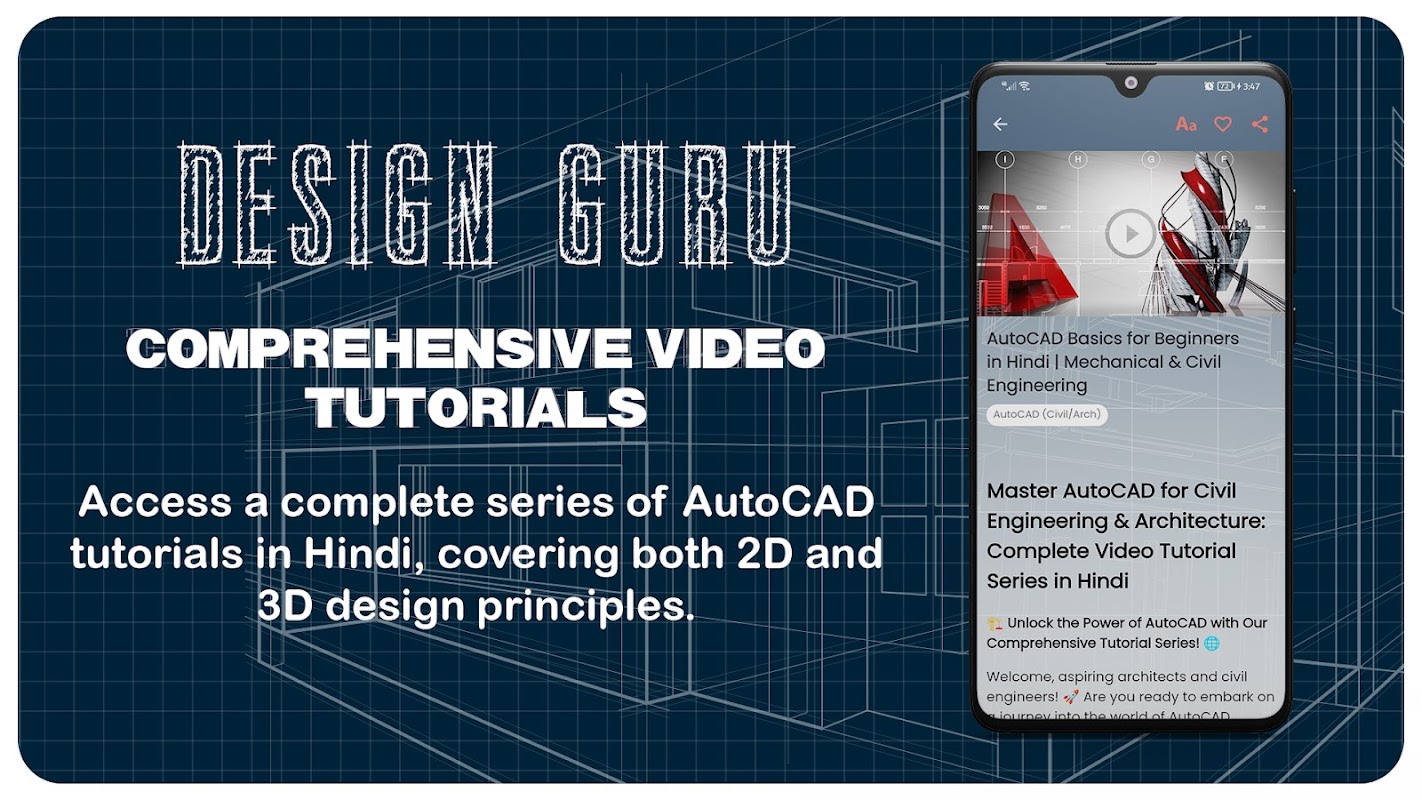 Desbloquee el poder de AutoCAD con nuestra completa aplicación de tutoriales, diseñada especialmente para principiantes en ingeniería civil y arquitectura. Sumérjase en un tesoro de más de 60 tutoriales en vídeo, elaborados en hindi y complementados con ejemplos prácticos para asegurarse de comprender los comandos y sus aplicaciones a la perfección.