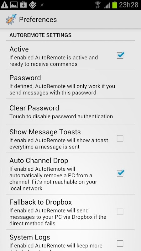 Asegúrese de hacer clic en el botón de menú en la parte superior AutoRemote para obtener una lista completa de posibilidades.