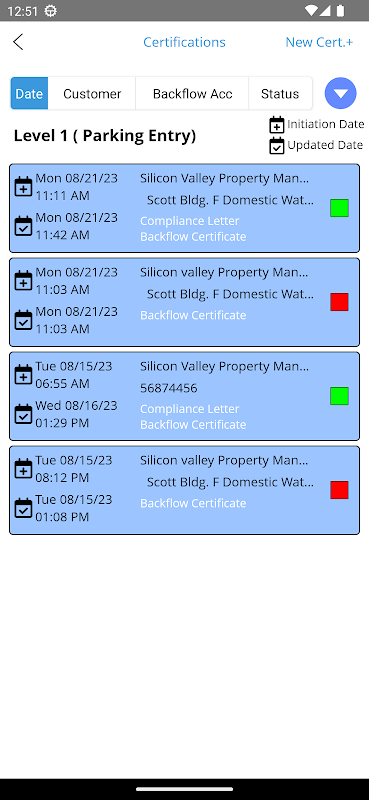Backflow PRO documenta los procedimientos de prueba de reflujo proporcionando pruebas "aprobadas" y "fallidas" en el dispositivo de prevención de reflujo del edificio, incluida una carta de cumplimiento, factura, estimación, orden de cambio para cualquier reparación requerida en el campo. Esto crea un programa altamente efectivo para certificar y rastrear "dispositivos de ensamblaje de reflujo" reparados en un horario regular. Las certificaciones de dispositivos de prevención de reflujo, las reparaciones, las estimaciones de trabajo y las facturas se programan fácilmente, se capturan visualmente y se registran con facilidad.